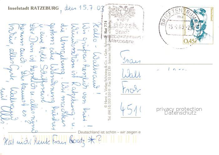 73322202 alte Postkarte Ratzeburg Fliegeraufnahme postalisch gelaufen Erhaltung siehe scans [KathaD81] KatCode: 11110001053100