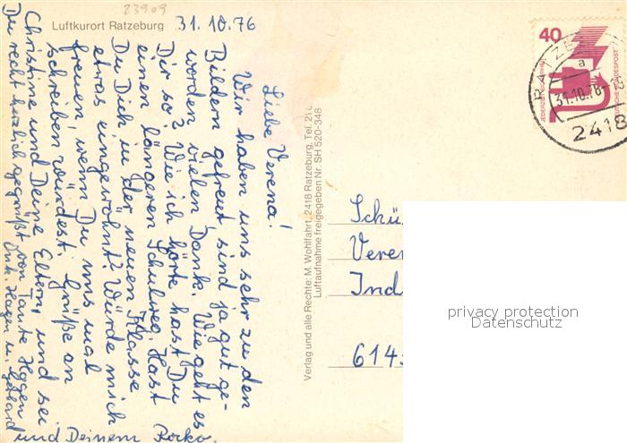 73224613 alte Postkarte Ratzeburg Fliegeraufnahme postalisch gelaufen Erhaltung siehe scans [KathaD81] KatCode: 11110001053100