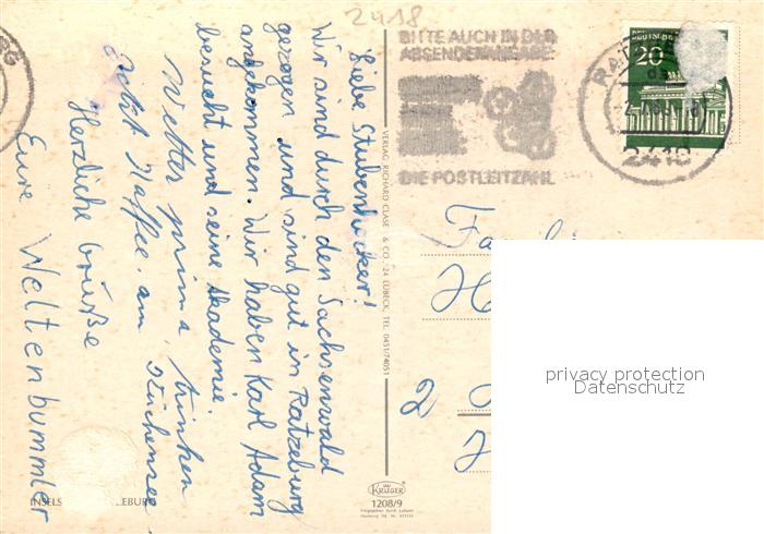 73224598 alte Postkarte Ratzeburg Fliegeraufnahme postalisch gelaufen Erhaltung siehe scans [KathaD81] KatCode: 11110001053100