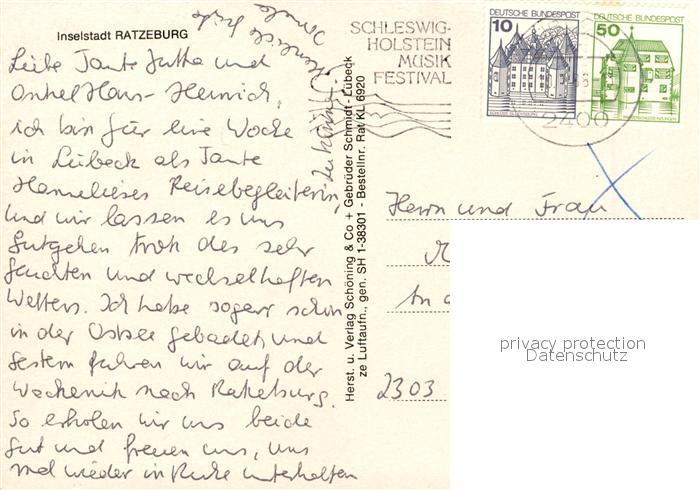 73110398 alte Postkarte Ratzeburg Fliegeraufnahme postalisch gelaufen Erhaltung siehe scans [NatalD47] KatCode: 11110001053100