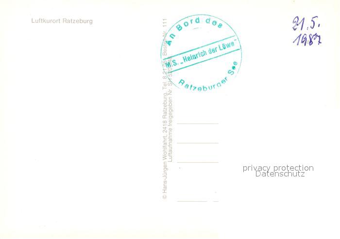 73087496 Ratzeburg Fliegeraufnahme postalisch nicht gelaufen Erhaltung siehe scans [NatalD47] KatCode: 11110001053100