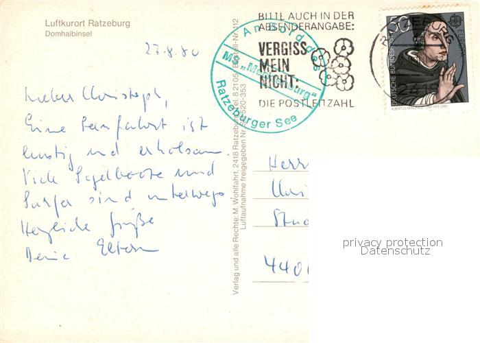 73031318 alte Postkarte Ratzeburg Fliegeraufnahme postalisch gelaufen Erhaltung siehe scans [KathaD81] KatCode: 11110001053100