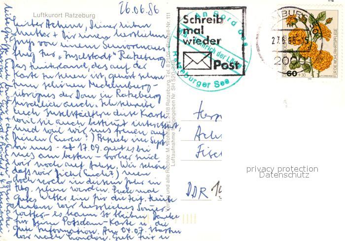 72974070 alte Postkarte Ratzeburg Fliegeraufnahme postalisch gelaufen Erhaltung siehe scans [PaolaD17] KatCode: 11110001053100