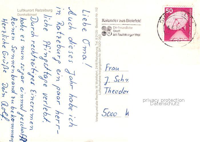 72938143 alte Postkarte Ratzeburg Fliegeraufnahme postalisch gelaufen Erhaltung siehe scans [WerneD78] KatCode: 11110001053100