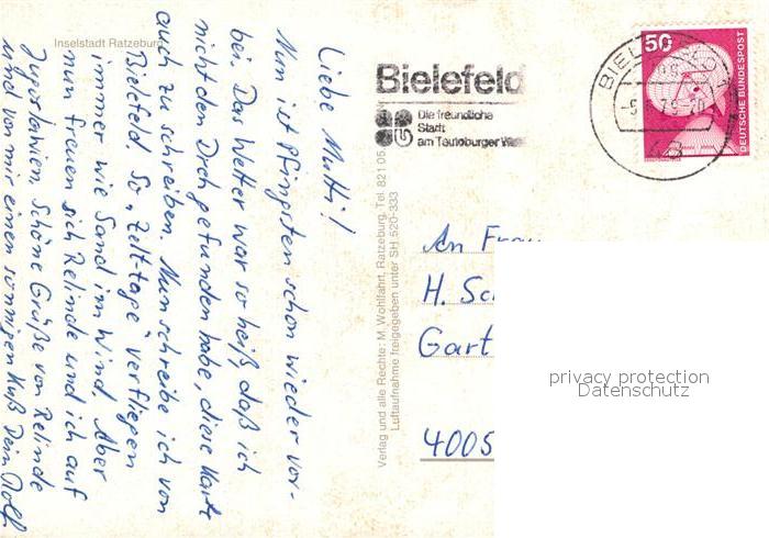 72938138 alte Postkarte Ratzeburg Fliegeraufnahme postalisch gelaufen Erhaltung siehe scans [WerneD78] KatCode: 11110001053100