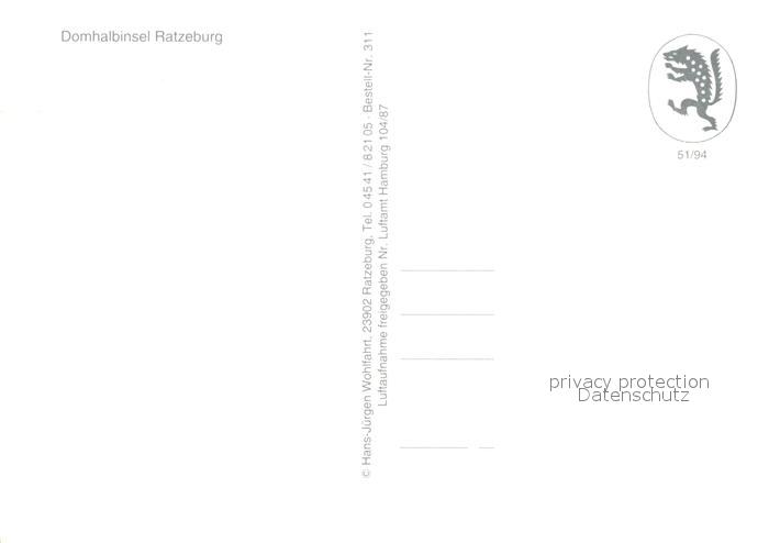 73119754 Ratzeburg Fliegeraufnahme Domhalbinsel postalisch nicht gelaufen Erhaltung siehe scans [LiesaD40] KatCode: 11110001053100