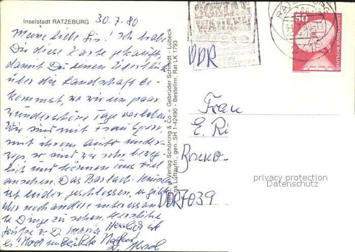 alte Postkarte Ratzeburg Fliegeraufnahme postalisch gelaufen Erhaltung siehe scans