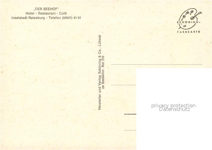 73097870 Ratzeburg Hotel Der Seehof Restaurant Cafe Springbrunnen postalisch nicht gelaufen Erhaltung siehe scans [WerneD78] KatCode: 11110001053100