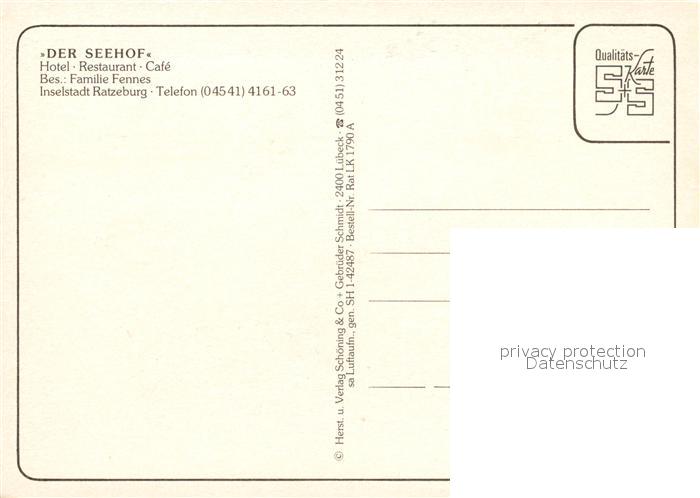 73087493 Ratzeburg Hotel Der Seehof postalisch nicht gelaufen Erhaltung siehe scans [NatalD47] KatCode: 11110001053100