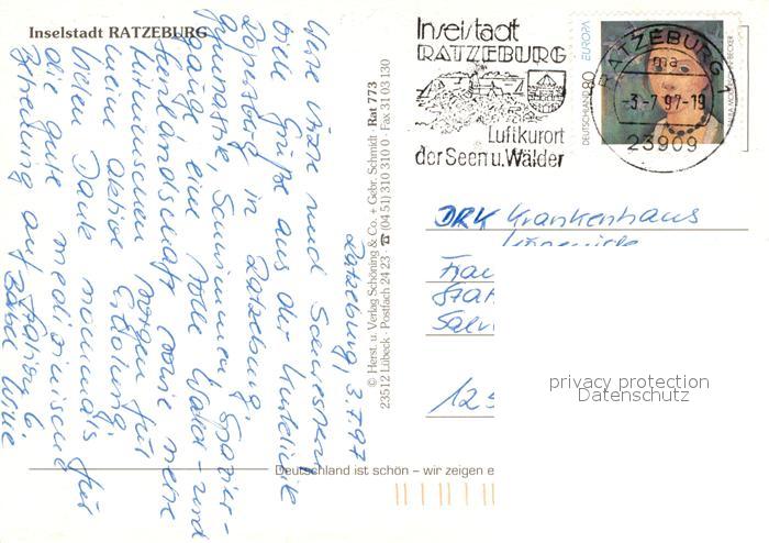 73045990 alte Postkarte Ratzeburg Inselstadt Fliegeraufnahme postalisch gelaufen Erhaltung siehe scans [WerneD78] KatCode: 11110001053100