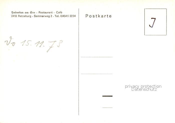 73087799 Ratzeburg Restaurant Cafe Hubertus am See postalisch nicht gelaufen Erhaltung siehe scans [KathaD81] KatCode: 11110001053100