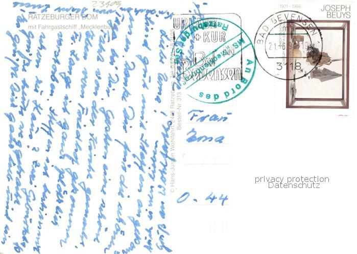 73671151 Ratzeburg Schleswig-Holstein Blick zum Ratzeburger Dom mit Fahrgastschiff Mecklenburg postalisch gelaufen Erhaltung siehe scans [FriedD77] alte Postkarte Frie Katcode 11110001053100