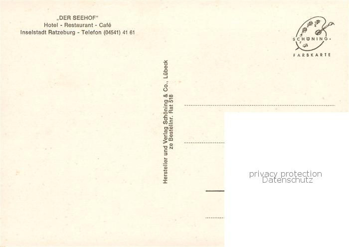 73846157 Ratzeburg Schleswig-Holstein Der Seehof Hotel Restaurant Cafe postalisch nicht gelaufen Erhaltung siehe scans [WerneD78] Wern Katcode 11110001053100
