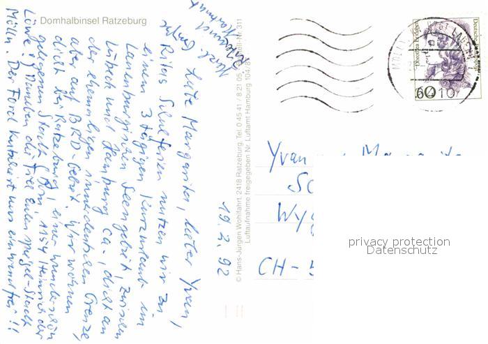 72636930 alte Postkarte Ratzeburg Schleswig-Holstein Domhalbinsel Fliegeraufnahme postalisch gelaufen Erhaltung siehe scans [WerneD78] KatCode: 11110001053100