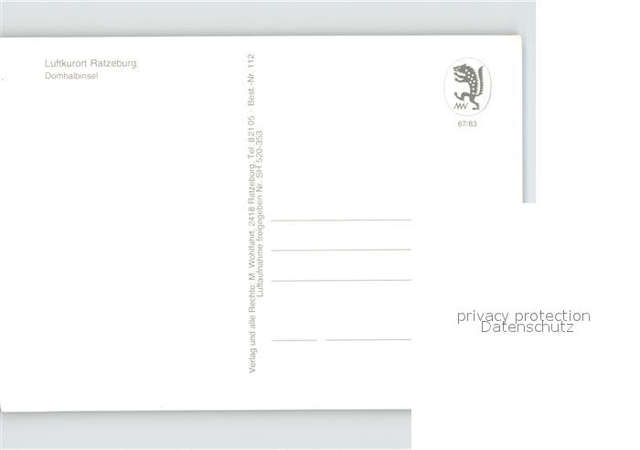 71850554 Ratzeburg Schleswig-Holstein Domhalbinsel Luftkurort Fliegeraufnahme postalisch nicht gelaufen Erhaltung siehe scans KatCode: 11110001053100
