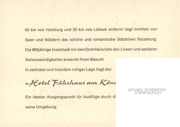 73688136 Ratzeburg Schleswig-Holstein Faehrhaus am Koenigsdamm Restaurant Inselstadt Naturpark Lauenburgische Seen postalisch nicht gelaufen Erhaltung siehe scans [FriedD77] Frie Katcode 11110001053100