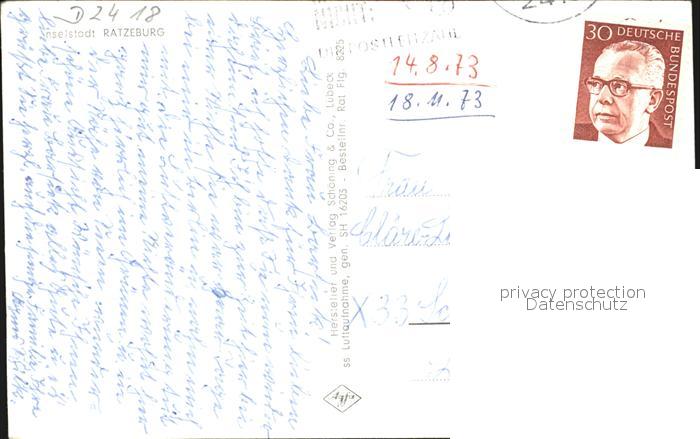 72581301 alte Postkarte Ratzeburg Schleswig-Holstein Fliegeraufnahme postalisch gelaufen Erhaltung siehe scans [AndreD76] KatCode: 11110001053100