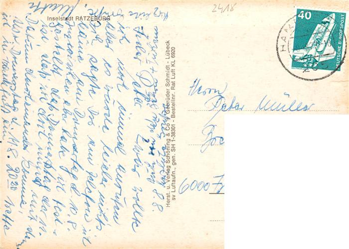 73949557 Ratzeburg Schleswig-Holstein Fliegeraufnahme postalisch gelaufen Erhaltung siehe scans [WerneD78] alte Postkarte Wern Katcode 11110001053100