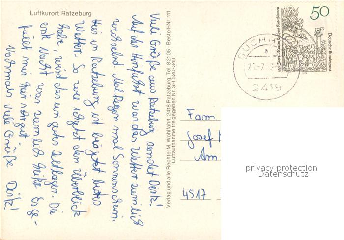 73687751 Ratzeburg Schleswig-Holstein Fliegeraufnahme postalisch gelaufen Erhaltung siehe scans [WerneD78] alte Postkarte Wern Katcode 11110001053100
