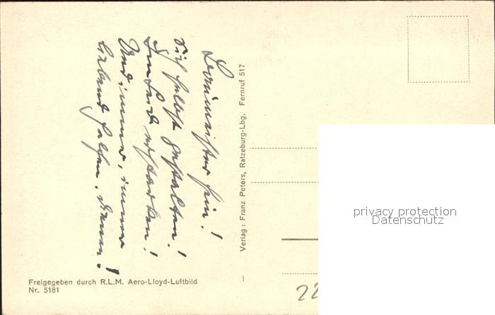 41590044 Ratzeburg Schleswig-Holstein Fliegeraufnahme postalisch nicht gelaufen Erhaltung siehe scans Alte Ansichtskarte Postkarte hz_L Katcode 11110001053100