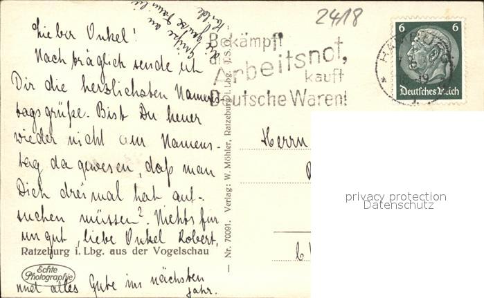 41553530 Ratzeburg Schleswig-Holstein Fliegeraufnahme postalisch gelaufen Erhaltung siehe scans Alte Ansichtskarte Postkarte alte Postkarte hz_W Katcode 11110001053100