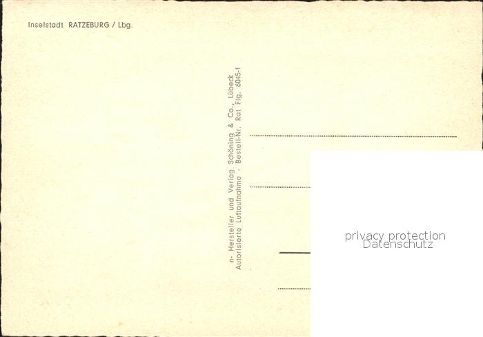 72016962 Ratzeburg Schleswig-Holstein Fliegeraufnahme Inselstadt postalisch nicht gelaufen Erhaltung siehe scans KatCode: 11110001053100