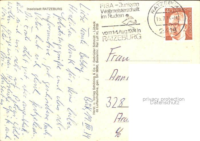 72516679 alte Postkarte Ratzeburg Schleswig-Holstein Fliegeraufnahme Inselstadt postalisch gelaufen Erhaltung siehe scans KatCode: 11110001053100