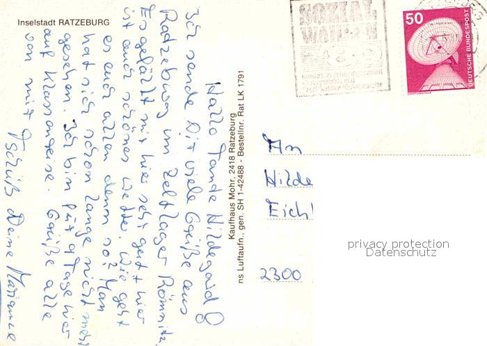 72791251 alte Postkarte Ratzeburg Schleswig-Holstein Fliegeraufnahme Iselstadt postalisch gelaufen Erhaltung siehe scans [LiesaD40] KatCode: 11110001053100