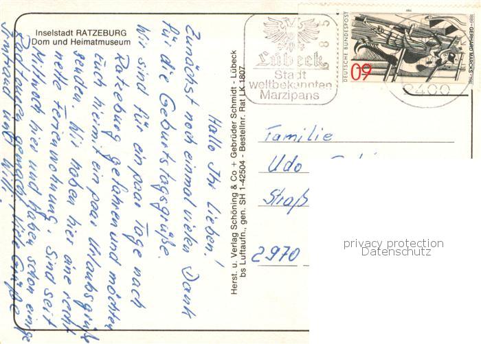 73761361 Ratzeburg Schleswig-Holstein Fliegeraufnahme mit Dom und Heimatmuseum postalisch gelaufen Erhaltung siehe scans [WerneD78] alte Postkarte Wern Katcode 11110001053100