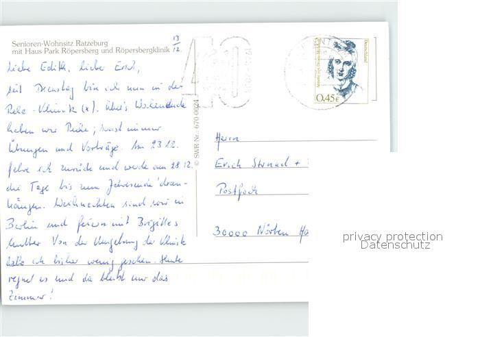 72302361 alte Postkarte Ratzeburg Schleswig-Holstein Fliegeraufnahme mit Haus Park Roepersberg postalisch gelaufen Erhaltung siehe scans KatCode: 11110001053100