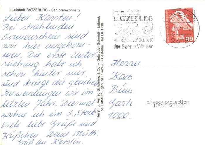 72585544 alte Postkarte Ratzeburg Schleswig-Holstein Fliegeraufnahme Seniorenwohnsitz postalisch gelaufen Erhaltung siehe scans [AndreD76] KatCode: 11110001053100