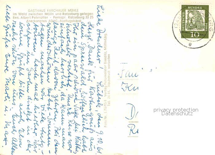 72634260 alte Postkarte Ratzeburg Schleswig-Holstein Gasthaus Farchauer Muehle postalisch gelaufen Erhaltung siehe scans [AndreD76] KatCode: 11110001053100