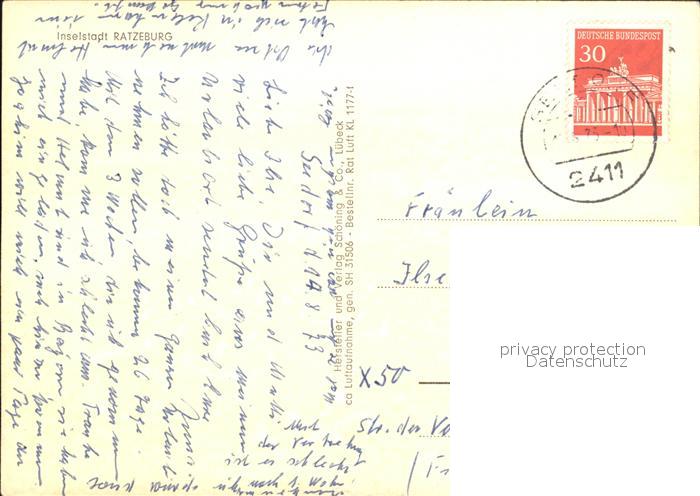 72557417 alte Postkarte Ratzeburg Schleswig-Holstein Inselstadt Luftbild postalisch gelaufen Erhaltung siehe scans [KathaD79] KatCode: 11110001053100
