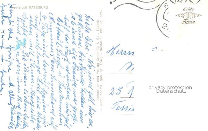 73706973 Ratzeburg Schleswig-Holstein Inselstadt Luftkurort Naturpark Lauenburgische Seen postalisch gelaufen Fliegeraufnahme Erhaltung siehe scans [FriedD77] Fliegeraufnahme alte Postkarte Frie Katcode 11110001053100