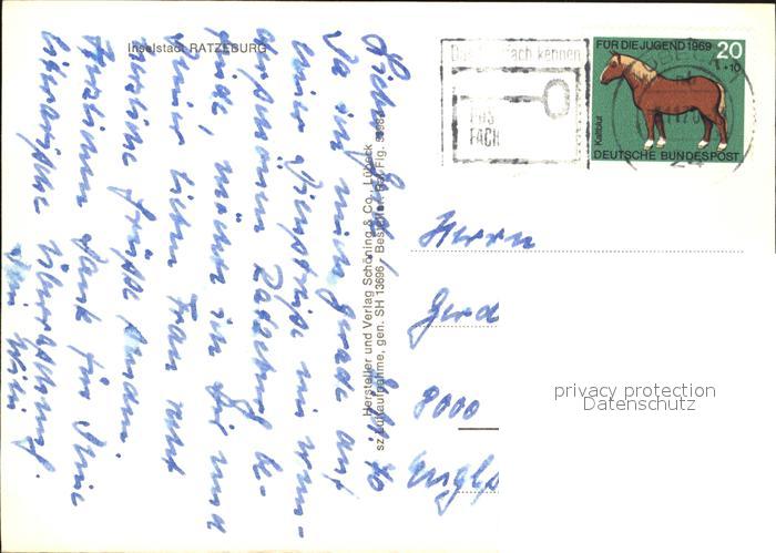 72592714 alte Postkarte Ratzeburg Schleswig-Holstein Inselstadt Naturpark Lauenburgische Seen Fliegeraufnahme postalisch gelaufen Erhaltung siehe scans [FriedD77] KatCode: 11110001053100