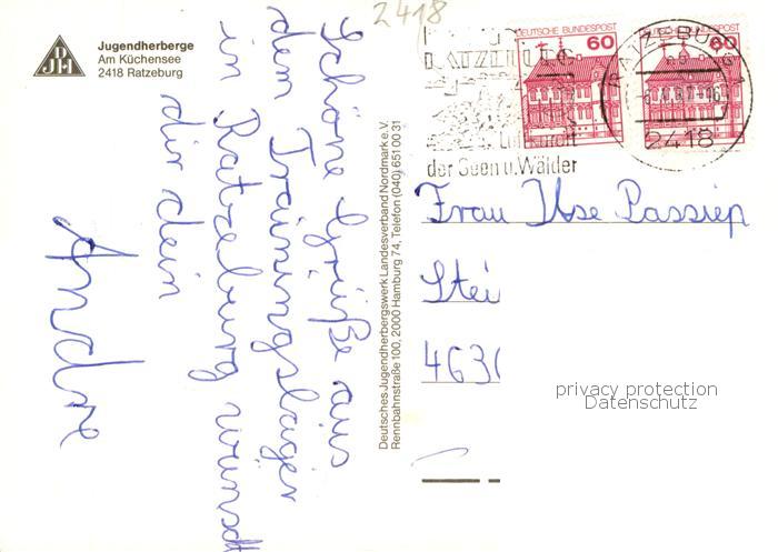 73870560 Ratzeburg Schleswig-Holstein Jugendherberge Kuechensee Strand postalisch gelaufen Erhaltung siehe scans [WerneD78] alte Postkarte Wern Katcode 11110001053100