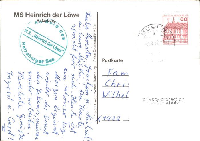 71979089 alte Postkarte Ratzeburg Schleswig-Holstein MS Heinrich der Loewe postalisch gelaufen Erhaltung siehe scans KatCode: 11110001053100