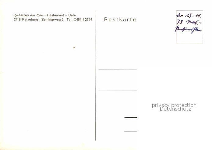 72659559 Ratzeburg Schleswig-Holstein Restaurant Hubertus am See postalisch nicht gelaufen Erhaltung siehe scans [NatalD47] KatCode: 11110001053100