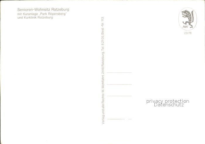 72318559 Ratzeburg Schleswig-Holstein Senioren-Wohnsitz Kuranlage Park Roepersberg postalisch nicht gelaufen Erhaltung siehe scans KatCode: 11110001053100