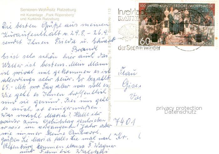 73787770 Ratzeburg Schleswig-Holstein Senioren Wohnsitz Ratzeburg mit Kuranlage Park Roepersberg und Kurklinik Ratzeburg postalisch gelaufen Erhaltung siehe scans [WerneD78] alte Postkarte Wern Katcode 11110001053100