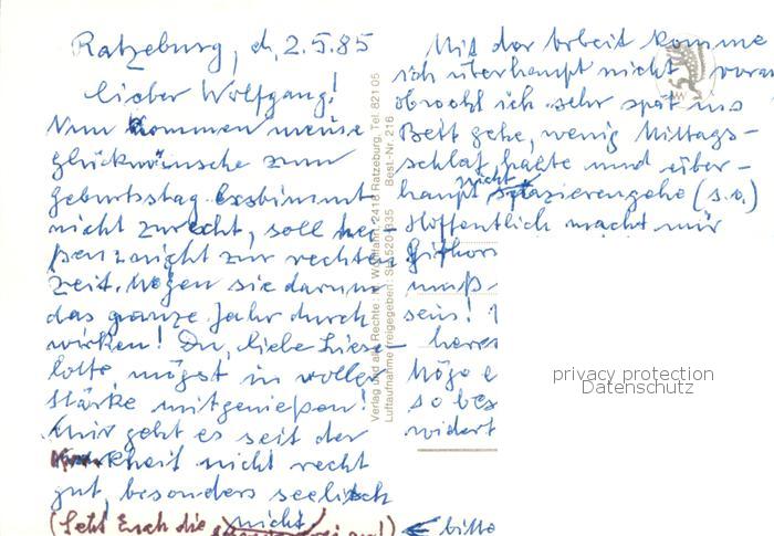 73793612 Ratzeburg Schleswig-Holstein Seniorenwohnsitz Inselstadt Naturpark Lauenburgische Seen postalisch nicht gelaufen Fliegeraufnahme Erhaltung siehe scans [FriedD77] Fliegeraufnahme Frie Katcode 11110001053100