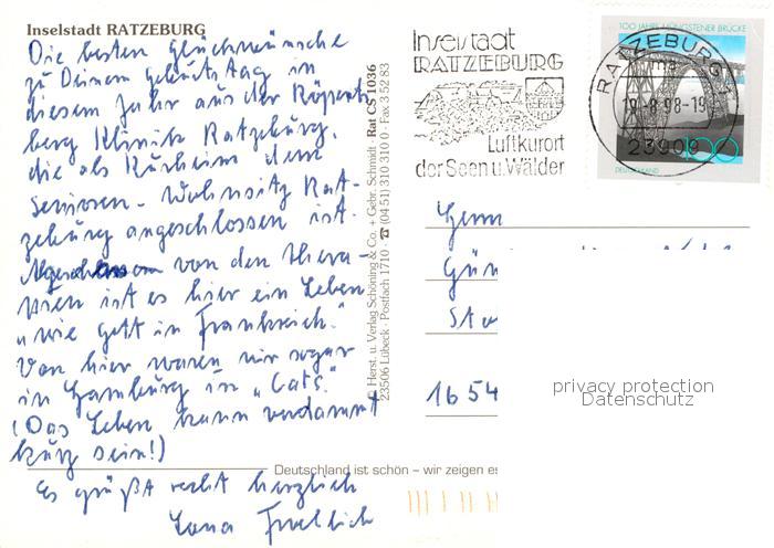 73208825 alte Postkarte Ratzeburg Seniorenwohnsitz Naturpark Lauenburgische Seen Fliegeraufnahme postalisch gelaufen Erhaltung siehe scans [FriedD77] KatCode: 11110001053100