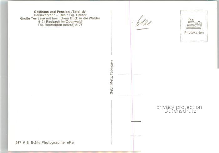 42937885 Raubach Odenwald Gasthaus Pension Talblick postalisch nicht gelaufen Erhaltung siehe scans [KathaD81] KatCode: 11110006437014