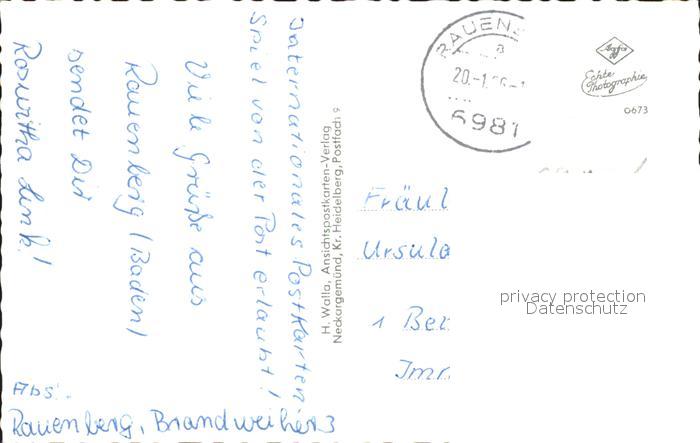 31728272 alte Postkarte Rauenberg Kraichgau Rathaus Schule Kindergarten Kirchpartie postalisch gelaufen Erhaltung siehe scans KatCode: 11110008226065