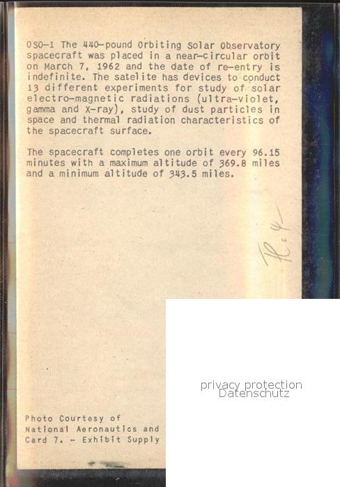 11537081 Raumfahrt O So-1 Orbiting Soalr Observatory USA NASA KatCode 22120000000900