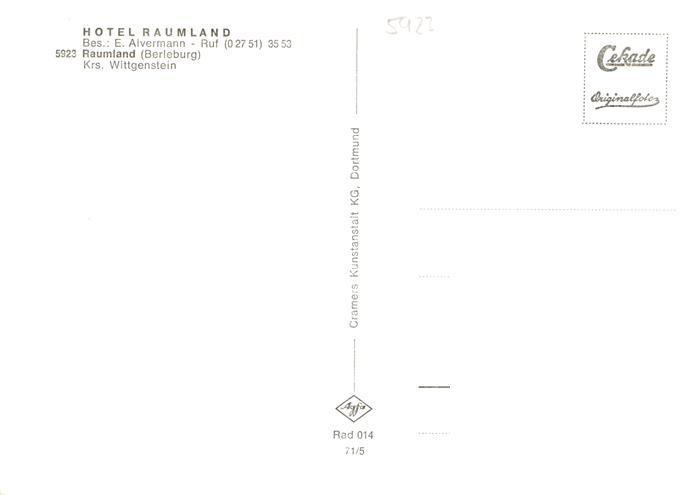 73869802 Raumland Bad Berleburg Hotel Raumland Restaurant Landschaftspanorama postalisch nicht gelaufen Erhaltung siehe scans [FriedD77] KatCode: 11110005970004