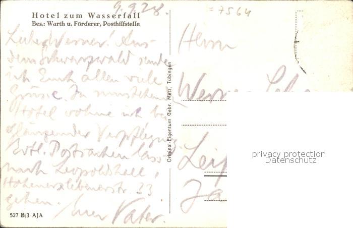 31708296 alte Postkarte Raumuenzach Murgtal Hotel Zum Wasserfall postalisch gelaufen Erhaltung siehe scans KatCode: 11110008216013