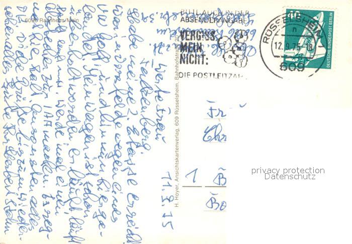 73673348 alte Postkarte Raunheim Wohnsiedlung Hochhaus Kirche Moderne Architektur postalisch gelaufen Erhaltung siehe scans [FriedD77] KatCode: 11110006433010