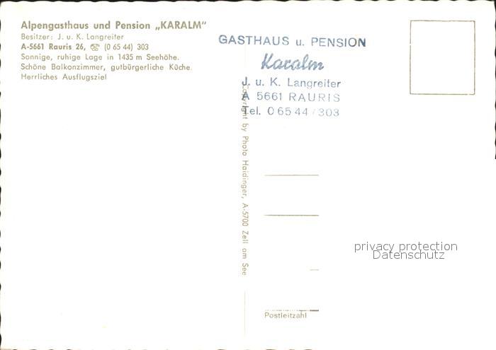 71859836 Rauris Alpengasthaus-Pension Karalm postalisch nicht gelaufen Erhaltung siehe scans KatCode: 11390322050617