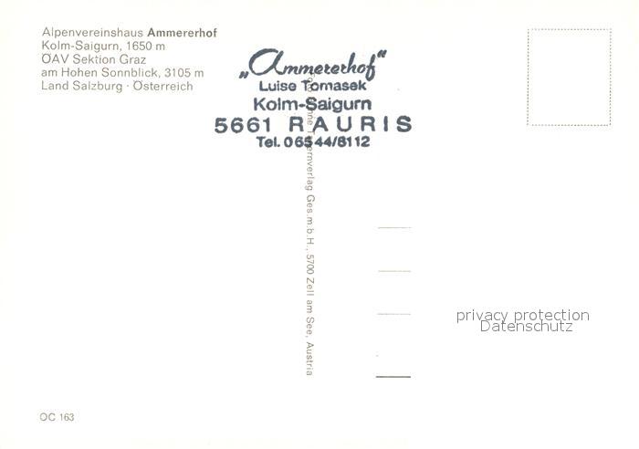 73601334 Rauris Alpenvereinshaus Ammererhof Kolm Saigurn am Hohen Sonnblick postalisch nicht gelaufen Erhaltung siehe scans [FriedD77] KatCode: 11390322050617